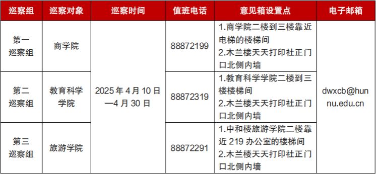 根據《中共湖南師范大學委員會巡察工作實施辦法(試行)》有關規定,經學校黨委研究,學校第六輪巡察決定對商學院、教育科學學院、旅游學院黨委開展常規巡察。現將有關事項公告如下: