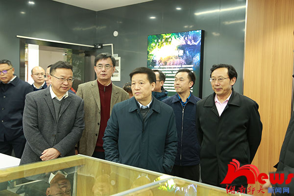 隨后,蔣洪新一行考察了地學博物館、大數據可視化展示廳,并對博物館建設方面取得的成就予以肯定。他們表示,學校要全面貫徹落實立德樹人的根本任務,進一步提升育人環境,整合資源、統籌布局,促進人才培養質量持續提升。