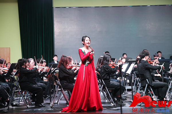 音樂(lè)會(huì)在一曲由譚仲池作詞,音樂(lè)學(xué)院院長(zhǎng)廖勇作曲的國(guó)家藝術(shù)基金資助原創(chuàng)民族歌劇《愛(ài)蓮說(shuō)》序曲中拉開(kāi)帷幕。我校一百余名優(yōu)秀師生同臺(tái)演繹了10余首具有教育和鑒賞代表性的經(jīng)典作品,音樂(lè)會(huì)既有耳熟能詳?shù)摹段液臀业淖鎳?guó)》《把一切獻(xiàn)給黨》《唱支山歌給黨聽(tīng)》和迎接香港回歸的《御風(fēng)萬(wàn)里》等紅色經(jīng)典,也有貝多芬的《命運(yùn)交響曲》第一樂(lè)章和喜迎豐收的《農(nóng)民波爾卡》等世界經(jīng)典,還有榮獲CCTV中國(guó)器樂(lè)電視大賽最佳中國(guó)原創(chuàng)作品獎(jiǎng)的古箏協(xié)奏曲《秋韻》等時(shí)代新作。