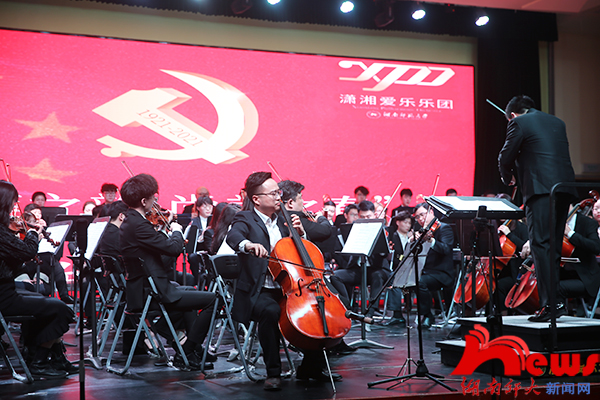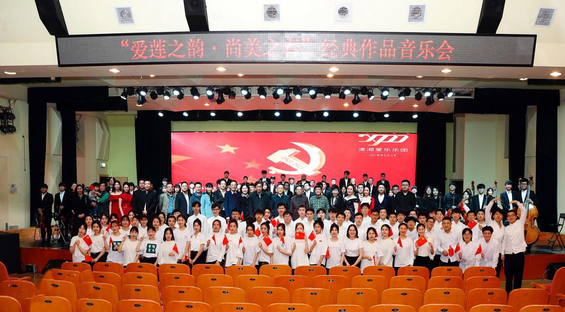 市政府機(jī)關(guān)工委、長(zhǎng)沙銀行等省市企校相關(guān)領(lǐng)導(dǎo)嘉賓,我校相關(guān)單位負(fù)責(zé)人與黨員師生代表參加音樂(lè)會(huì)。