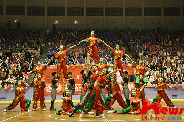 青春心向黨,建功新時代。文學院結合新國潮,以《初心向黨青春許國》舞出了文院學子的愛國熱情與永遠許國的決心;商學院在《紅》里邂逅一群民國學子,將先人們的一腔熱血以及永遠向前的決心展現出來,感染了在場的觀眾;樹達學院的《前行》用隨風飄揚的彩帶,演繹了一段可歌可泣的愛情故事,重現了那個熱血沸騰的年代;歷史文化學院的《永不消逝的電波》向湖湘女杰向警予致敬,她的英勇事跡藏在聲聲電波中,永不消逝;化學化工學院的《百年頌黨恩,化院正青春》略去急躁,沉淀執著,以獨特的方式銘記黨恩;數學與統計學院的《數夢?中國》展現了數統學子用舞蹈述說紅色青春、用熱血揮灑青云之志的青年風貌;旅游學院的《紅星向黨》展現了青年學子活力與動感的融合,舞出了對中國共產黨的真情頌歌;音樂學院的《中國少年舞今朝》展現著少年的風采,他們以鏗鏘的步伐,奏響時代的強音。
