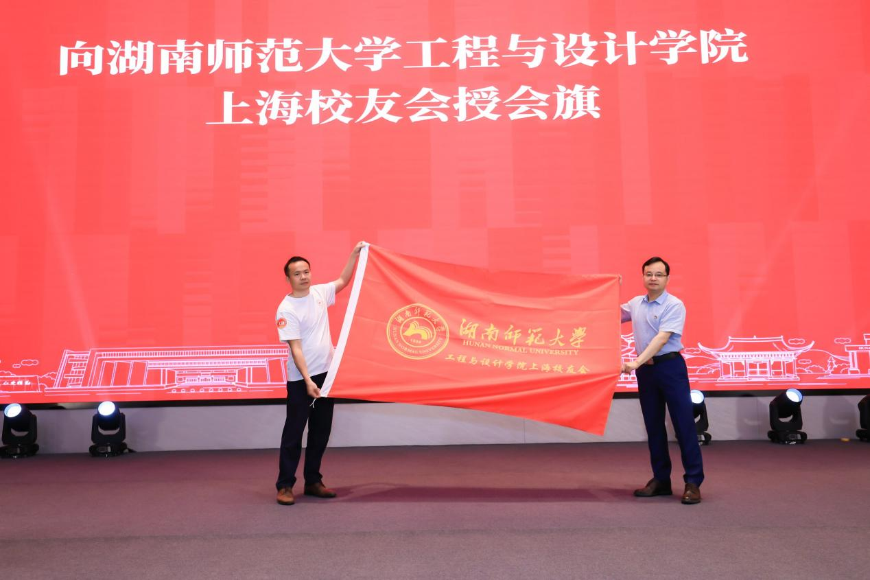 潘安練向工程與設計學院上海校友會授會旗,并向會長頒發聘書。他對工程與設計學院上海校友會成立表示熱烈祝賀,并對校友長期關注和支持母校建設表示衷心感謝。他希望校友與母校共同構建發展共同體,實現校友個人事業和母校事業的雙向奔赴。
