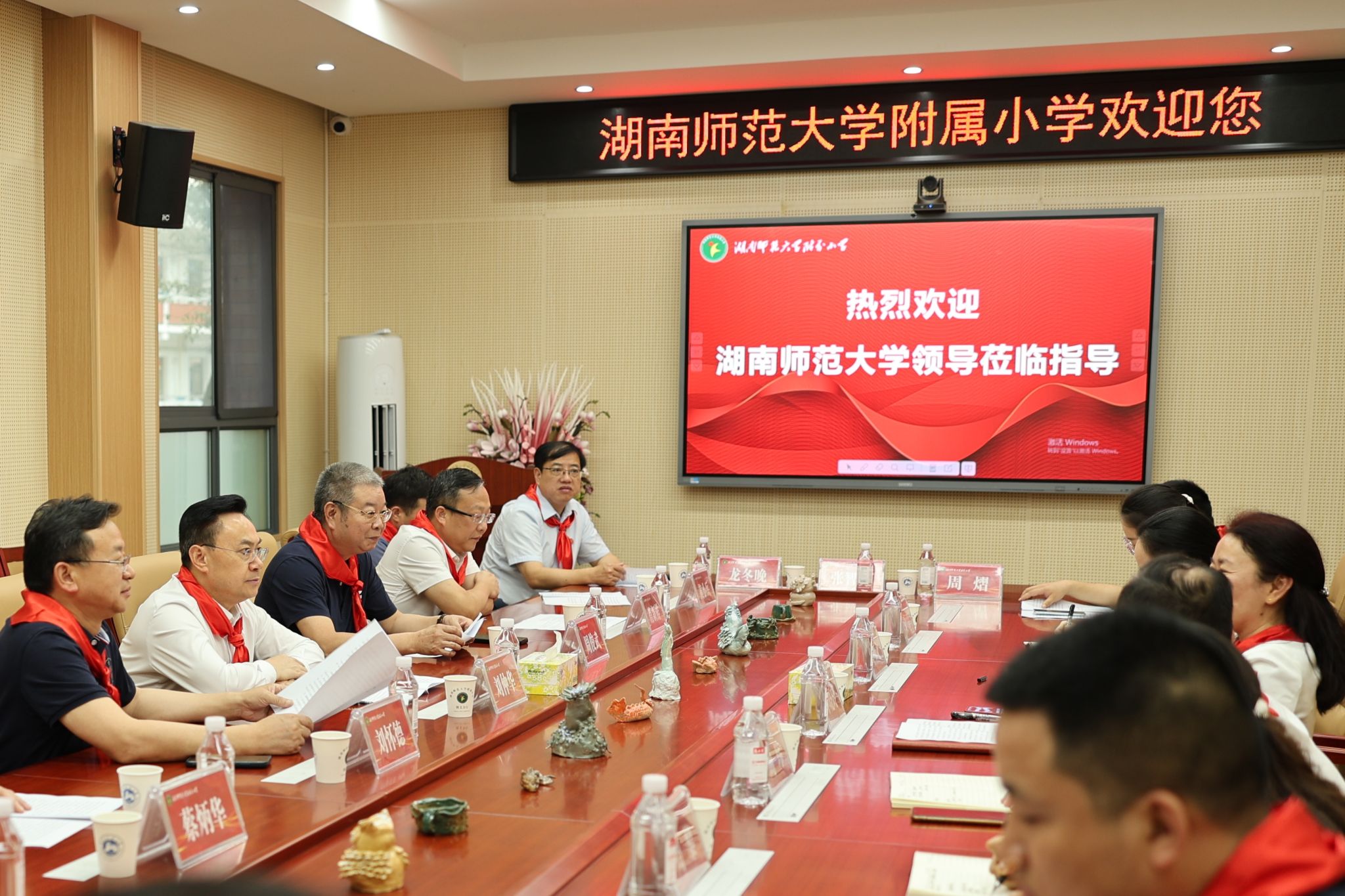 劉仲華一行走進附屬小學,少先隊員們為他們系上了鮮艷的紅領巾。劉仲華實地察看了校園文化墻、體育場、美食長廊等校園文化、生活區域,并召開調研座談會。會上,附屬小學校長李曉玲介紹了近五年來附屬小學的課程建設、師資力量、平臺和項目建設等情況,希望學校助力附屬小學加快推進圖書館、科創基地和勞動教育基地建設。