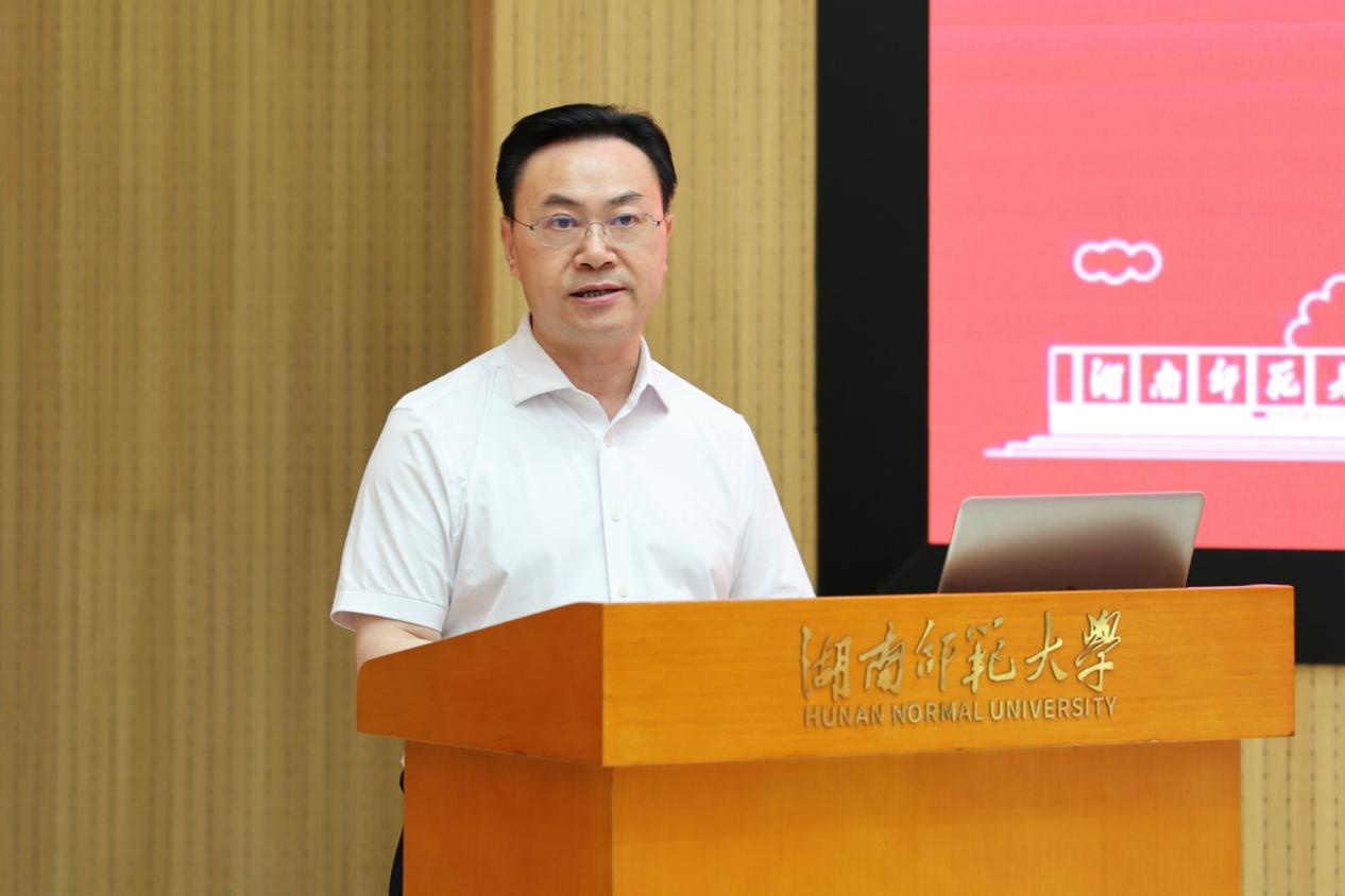 王武代表湖南省委組織部對參加培訓的各位領導和學員表示熱烈歡迎。他指出,湖南省委歷來高度重視鄉村振興的人才工作,堅持把人才振興作為鄉村振興的重要的基礎。鄉村振興靠人才,人才培養靠教育。普高(職高)教育是鄉村振興的基礎性工程。湖南師范大學承辦此次普高(職高)黨組織書記校長專業培訓,是教育人才“組團式”幫扶工作的重要內容,是落實黨中央關于推動鞏固脫貧攻堅成果同鄉村振興有效銜接決策部署的重要補充。對于促進被幫扶地區黨建工作提質增效,教育教學高質量發展具有重要的意義。他表示,希望各位學員珍惜機會,認真學習,積極思考,深入研討,相互啟發,真正做到學有所思、學有所悟、學有所獲。