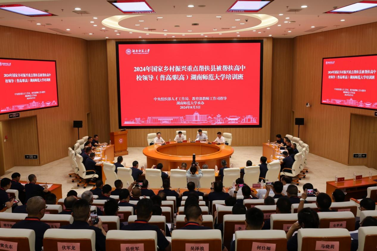 (記者 黃依依 王卓雅)8月3日上午,2024年國家鄉村振興重點幫扶縣被幫扶高中校領導(普高/職高)培訓班開班儀式在我校圖書館報告廳舉行。中央組織部人才局五處副處級干部曲麒翰,湖南省委組織部副部長王武,我校校長、中共第二十屆中央候補委員、中國工程院院士劉仲華出席開班儀式。開班儀式由副校長唐賢清主持。