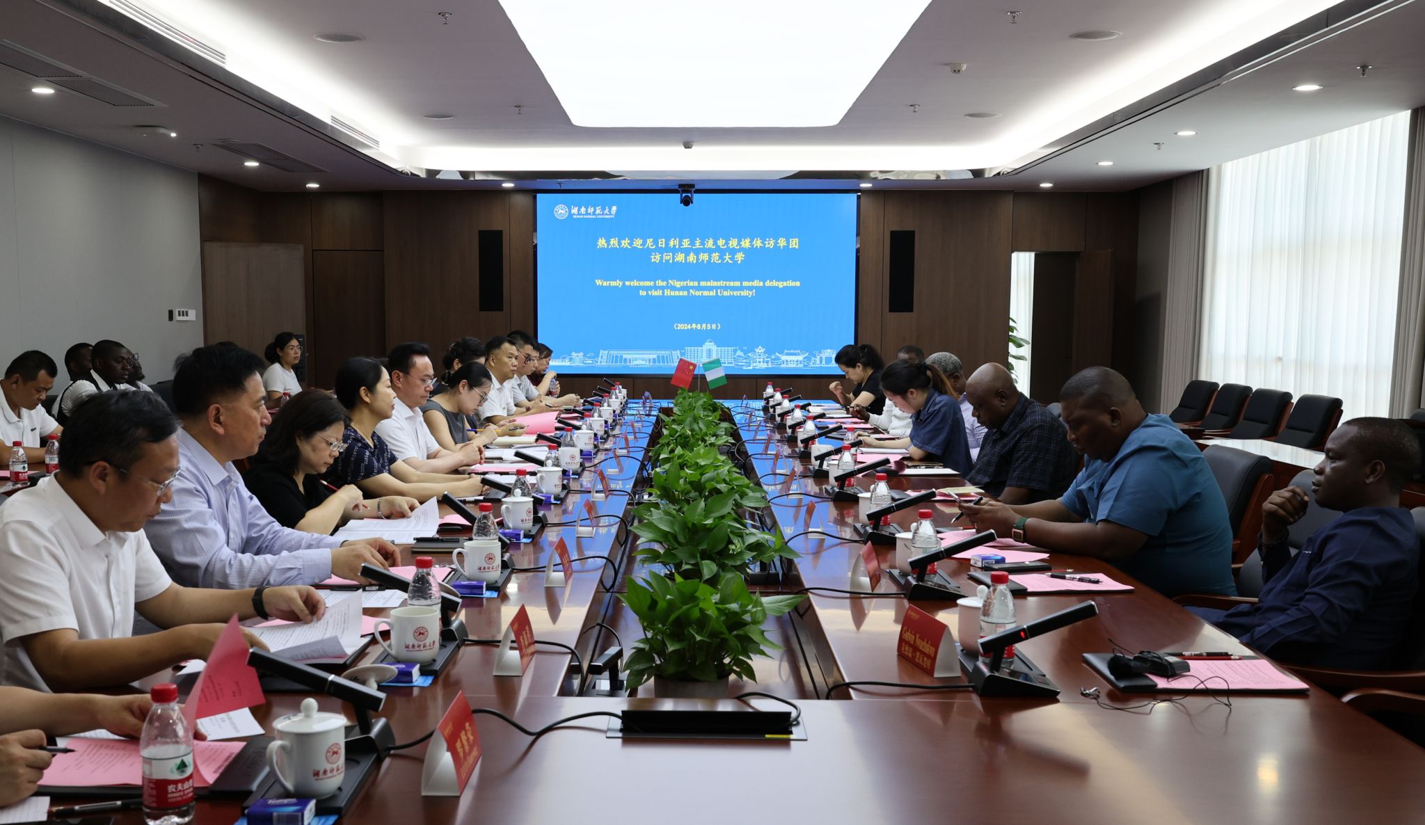 (記者 黃依依 王卓雅)8月5日,尼日利亞主流電視媒體訪華團訪問我校。尼日利亞資深媒體人Charles Udeogaranya(查爾斯·烏德奧加蘭亞,代表團團長),湖南城市學院副校長、湖南省中非文化合作交流社科普及基地主任徐姝,我校校長、第二十屆中央候補委員、中國工程院院士劉仲華出席會議。尼日利亞主流電視媒體訪華團一行,中國外交部、中國駐拉各斯總領館領事隨員朱文奐,外交部機關及駐外機構服務局主管劉頔,湖南省委外事辦新聞文化處處長李蕙男,湖南省中非經貿合作促進研究會,湖南城市學院及我校相關職能部門負責人參加會議。會議由我校國際交流合作處副處長李苗主持。