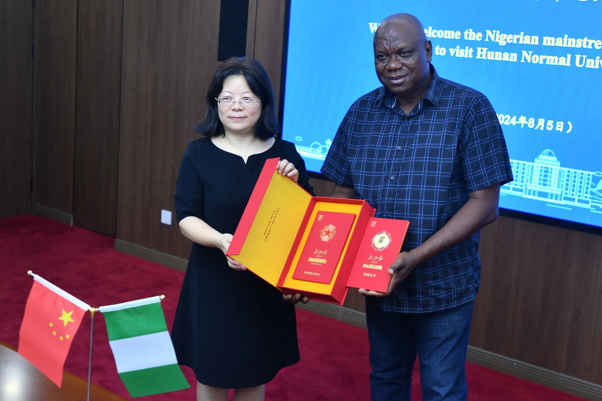 徐姝代表湖南城市學院全體師生向各位非洲朋友表示誠摯的問候和衷心的感謝。她簡要介紹了湖南城市學院與非洲的合作成果,并表示,湖南城市學院辦學五十多年來,始終胸懷“國之大者”,高度重視國際交流與合作,多年來與非洲雙向奔赴,取得了多方面合作交流的成果。特別與非洲加納海岸角大學合作舉辦“孔子學院”,搭建了中非文化交流、友好交往的橋梁,建立了良好的合作關系。她表示,尼日利亞是湖南對非合作的重點國家,城市學院將繼續努力推動中非合作,加強留學生培養,加強與尼日利亞新聞媒體的交流合作,積極探索、共享高校辦學發展的經驗智慧,在更寬廣的領域里開展更深層次的合作,讓合作成為交流思想、辨析問題、探討學術、增進友誼的重要平臺。