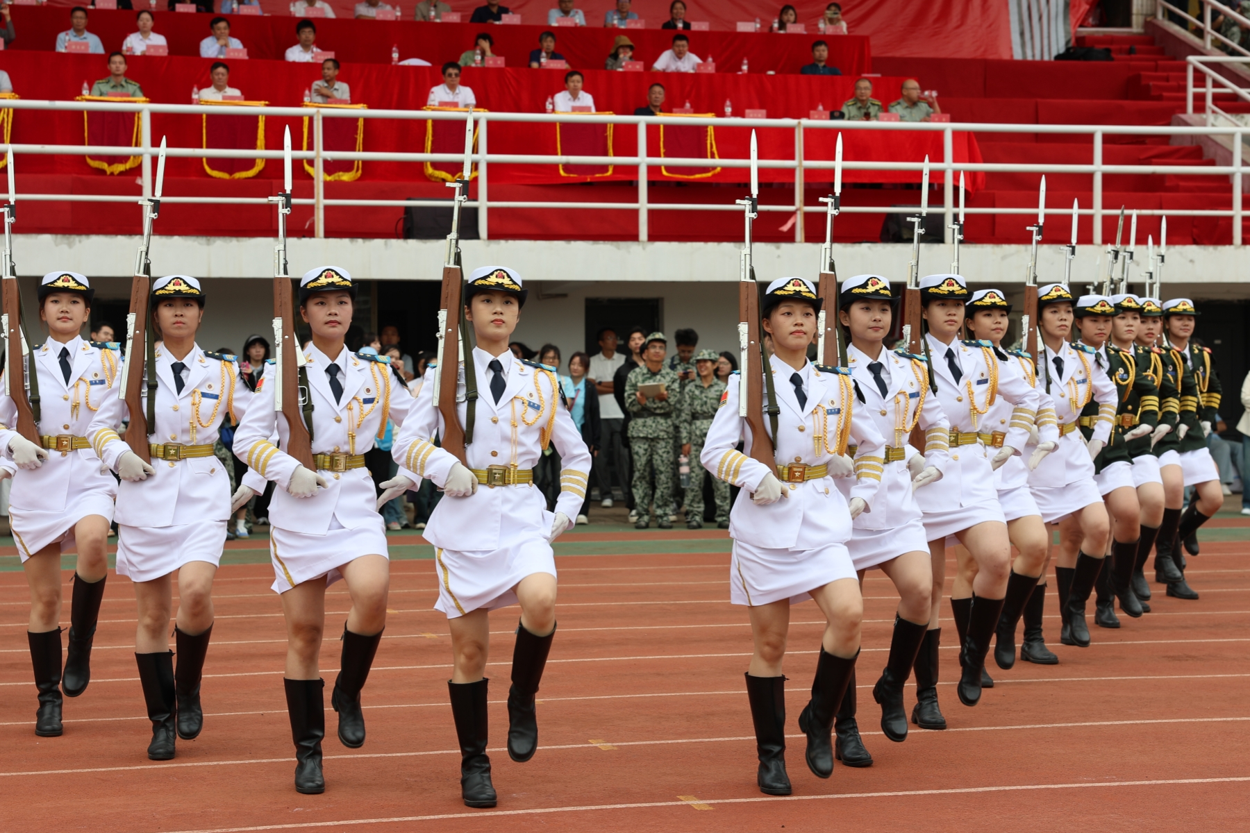 軍訓成果匯報儀式由女子國旗護衛隊指揮長、醫學部資絨同學指揮,隨著分列式進行曲響起,標兵就位,各學院方陣依次踏正步走過主席臺前接受檢閱,昂首挺胸,邁著堅定的步伐,喊著嘹亮的口號,展示著青春的颯爽英姿。