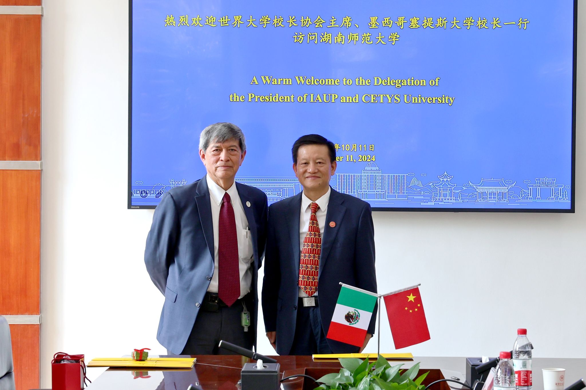 蔣洪新代表學校對費爾南多·萊昂·加西亞一行的到來表示熱烈歡迎,并介紹了我校的辦學歷史、學科建設、師資力量以及國際交流與合作的情況。他表示,自2021年加入世界大學校長協會以來,協會為我校提供了廣泛深入參與國際教育交流合作的更多平臺、更多渠道。未來,我校將繼續充分發揮特色與優勢,牽頭組織、積極參與協會的重大國際交流活動,為促進世界高等教育發展、構建人類命運共同體作出更大貢獻。他表示,高等教育的發展離不開校園和教師隊伍建設,更離不開國際國內高校交流合作。我校將珍惜此次機會,不斷提高國際化辦學水平,與墨西哥賽提斯大學攜手并進、共謀發展,為兩校加深友誼、加強合作而不懈努力。