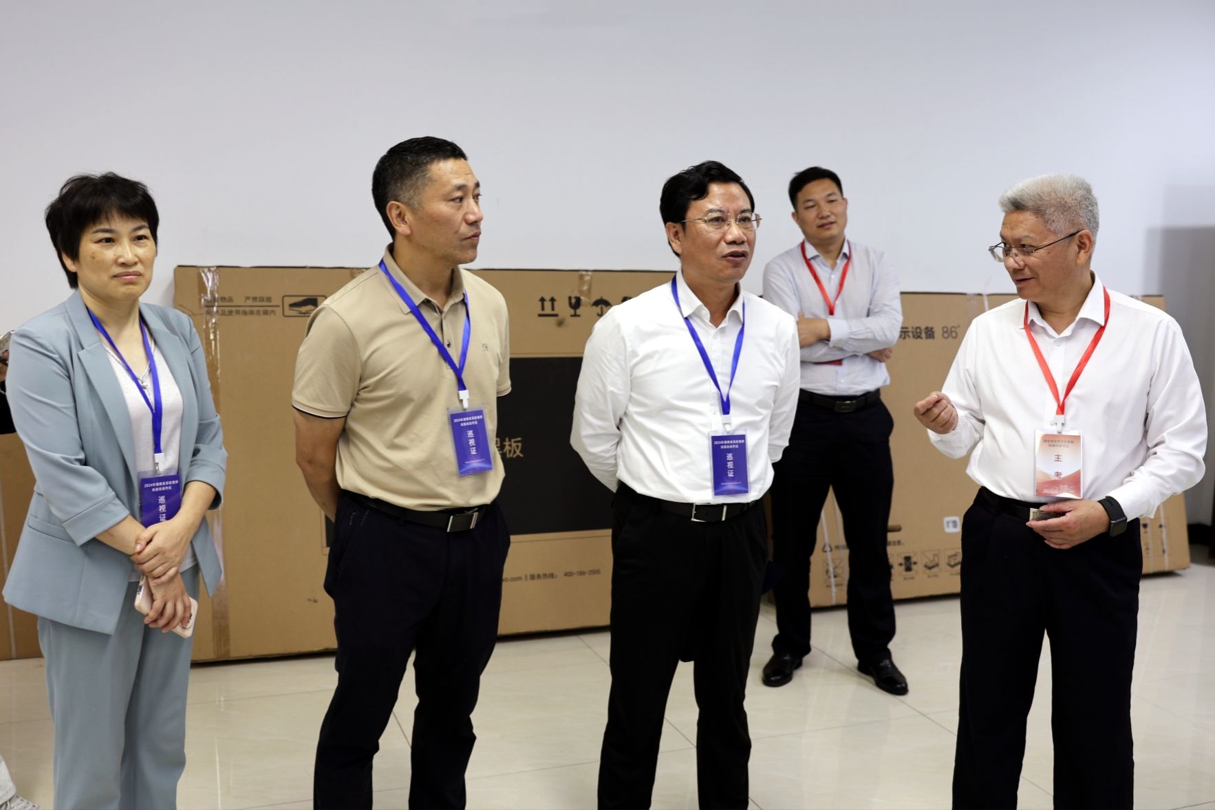 王仁祥一行先后參觀了監(jiān)控室、考場、考務室以及試卷保密室,了解了崗前培訓考試相關內(nèi)容、考場配置、監(jiān)考配置及考官培訓的詳細事宜,對我校承辦崗前培訓考試的完善措施以及豐富經(jīng)驗表示肯定。