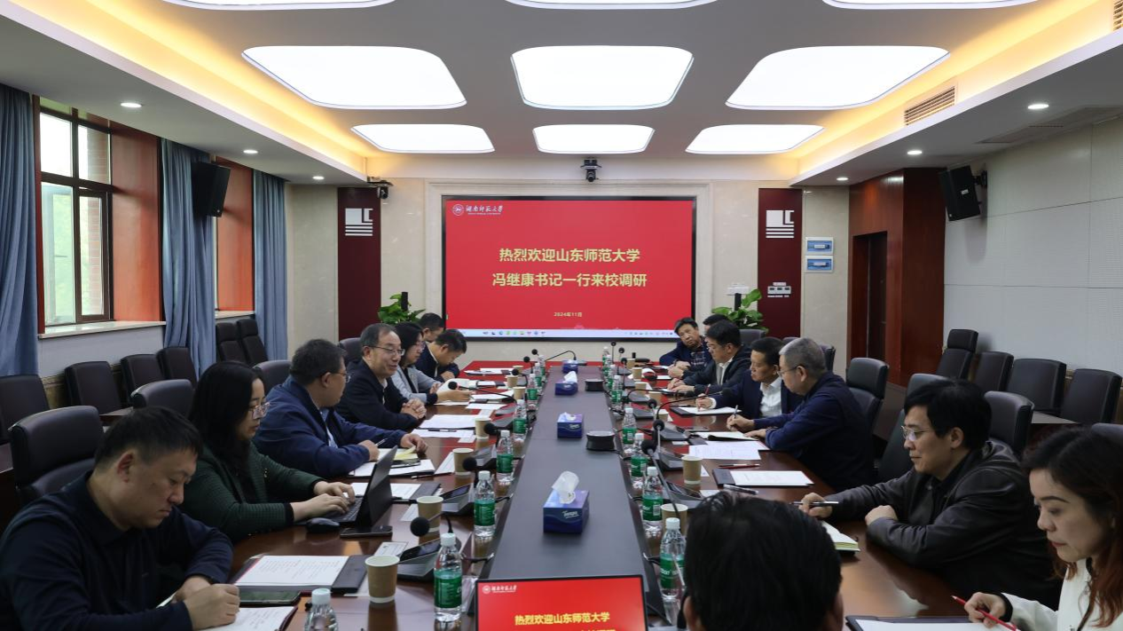 (記者 黃依依 李欣茹)11月5日下午,山東師范大學黨委書記馮繼康、副校長周珊珊一行來校走訪調研,并在中和樓611會議室舉行座談會。我校黨委書記蔣洪新出席會議。會議由校黨委副書記周俊武主持。
