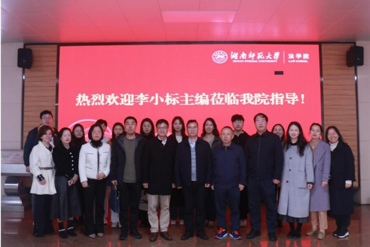 蔣新苗對李小標的到來表示歡迎。他從五個“一”介紹了我校的基本情況,包括由我校主辦、湖南省教育廳主管的法學專業(yè)學術(shù)期刊《時代法學》的創(chuàng)刊背景以及“開放、多元、前沿”的辦刊理念,并強調(diào)了思政工作在法學人才培養(yǎng)中的重要性,提出要在法學教育中更好地融入思政元素,為法學教育注入新的活力。
