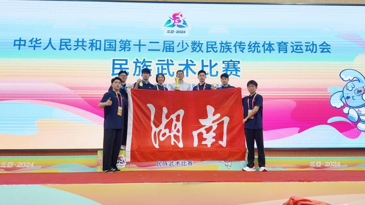 本次運動會我校助力湖南省代表團共派出了26名運動員,其中涵蓋了苗族、土家族、侗族、畬族等7個民族,共參加了民族武術和表演項目(競技類)兩大項目的比拼,比賽中,我校學子奮力拼搏,展現(xiàn)了高超的技藝和堅韌的意志,踐行著“中華民族一家親,同心共筑中國夢”的美好愿景,以師大聲音促進各民族交往交流交融,為民族大團結貢獻了師大力量。