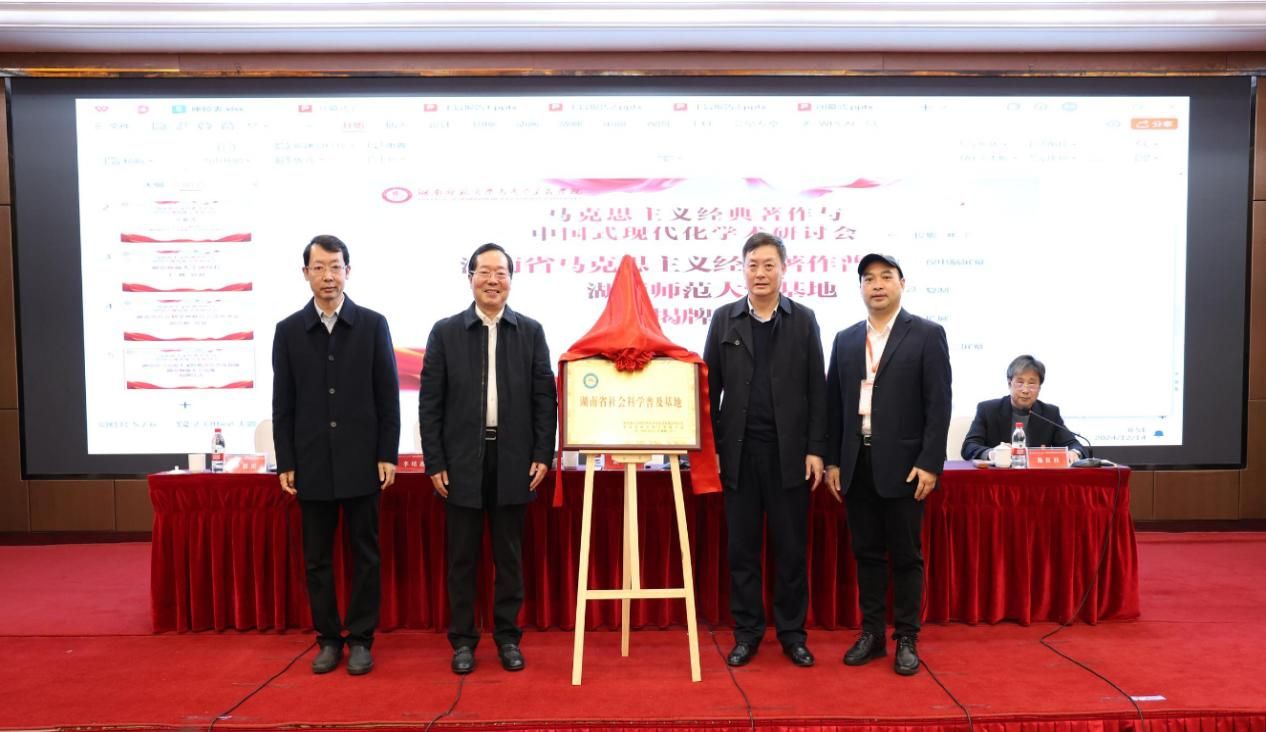 (供稿 馬克思主義學院)12月14日,我校舉行湖南省馬克思主義經典著作宣傳普及基地揭牌儀式暨馬克思主義經典著作與中國式現代化學術研討會。湖南省社科聯黨組書記胡代松、我校副校長王輝出席會議并為基地揭牌。開幕式由馬克思主義學院黨委書記陳紅桂主持。
