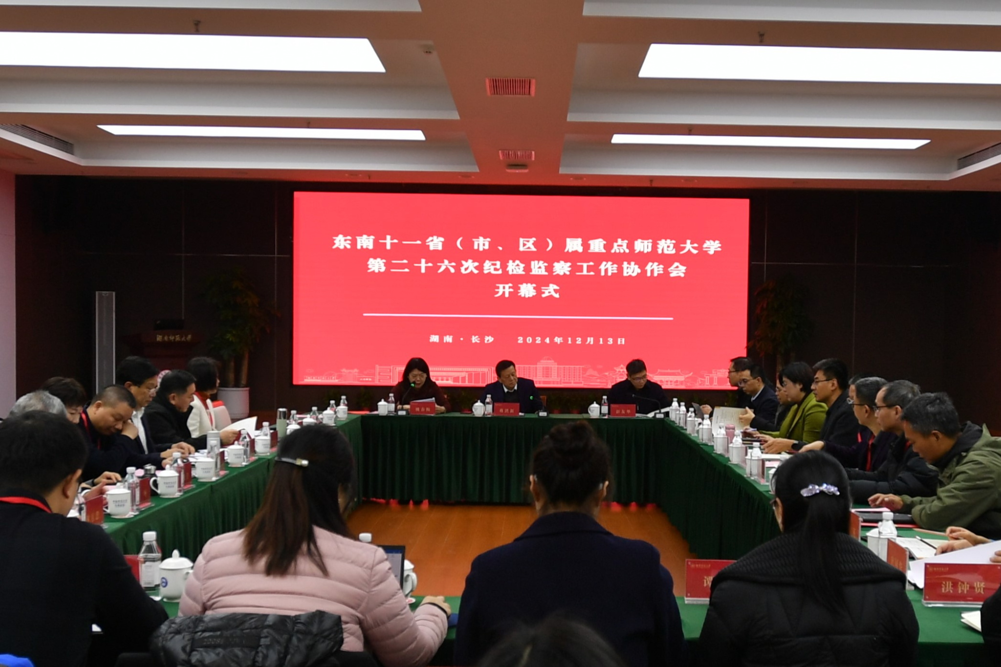 (供稿 紀委、監察專員辦公室)12月13日上午,東南十一?。ㄊ小^)屬重點師范大學第二十六次紀檢監察工作協作會在我校開幕。湖南省紀委監委第九監督檢查室副主任彭友華,我校黨委書記蔣洪新出席。會議由我校紀委書記姚春梅主持。