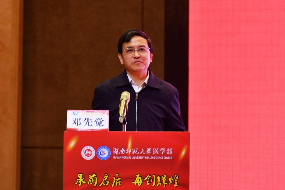 鄧先覺(jué)代表湖南省科技廳對(duì)基礎(chǔ)醫(yī)學(xué)院的成立表示熱烈祝賀。他充分肯定了學(xué)校近期在打造醫(yī)學(xué)核心板塊的重要舉措。他表示,將一如既往地高度重視和支持我校基礎(chǔ)醫(yī)學(xué)的發(fā)展,為進(jìn)一步加強(qiáng)基礎(chǔ)醫(yī)學(xué)創(chuàng)新,做好全方位、全過(guò)程、全鏈條服務(wù),期待攜手在基礎(chǔ)醫(yī)學(xué)領(lǐng)域研究中提高創(chuàng)新水平取得新突破。