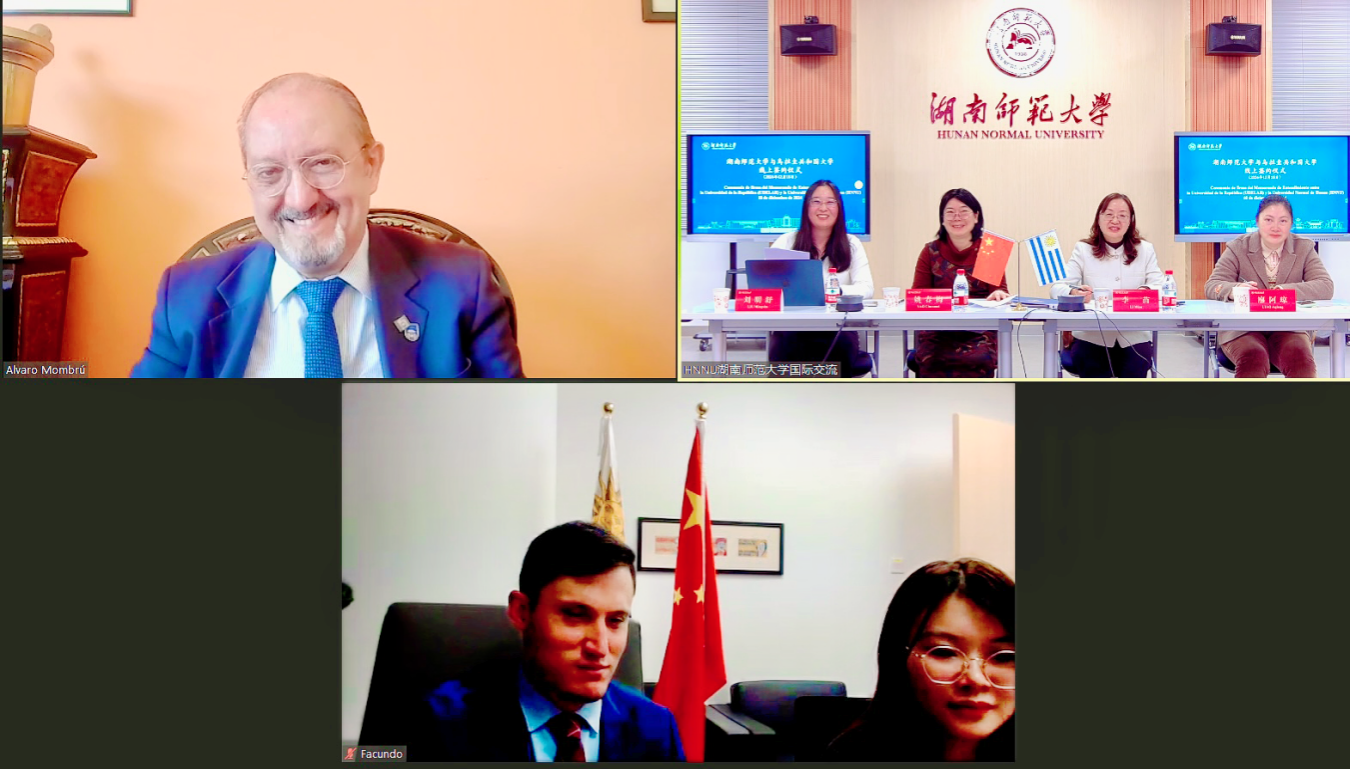 (供稿 國際交流合作處)12月18日,我校與烏拉圭東岸共和國大學舉行線上簽約儀式,兩校簽署框架協議,正式成為國際合作伙伴。烏拉圭東岸共和國駐廣州總領事法昆多·費爾南德斯·格拉、烏拉圭東岸共和國大學校長阿爾瓦羅·蒙布魯、我校紀委書記姚春梅出席儀式。儀式由國際交流合作處副處長李苗主持。