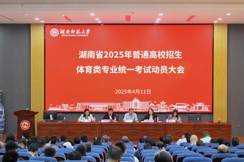 (通訊員 蔣曉晨 李欣穎)4月11日上午,湖南省2025年普通高校招生體育類專業統一考試動員大會在我校召開。省教育考試院黨委副書記、紀委書記劉海楊,省教育考試院副院長李瑛,我校副校長王輝出席會議。會議由我校招生與就業指導處副處長李燦華主持。