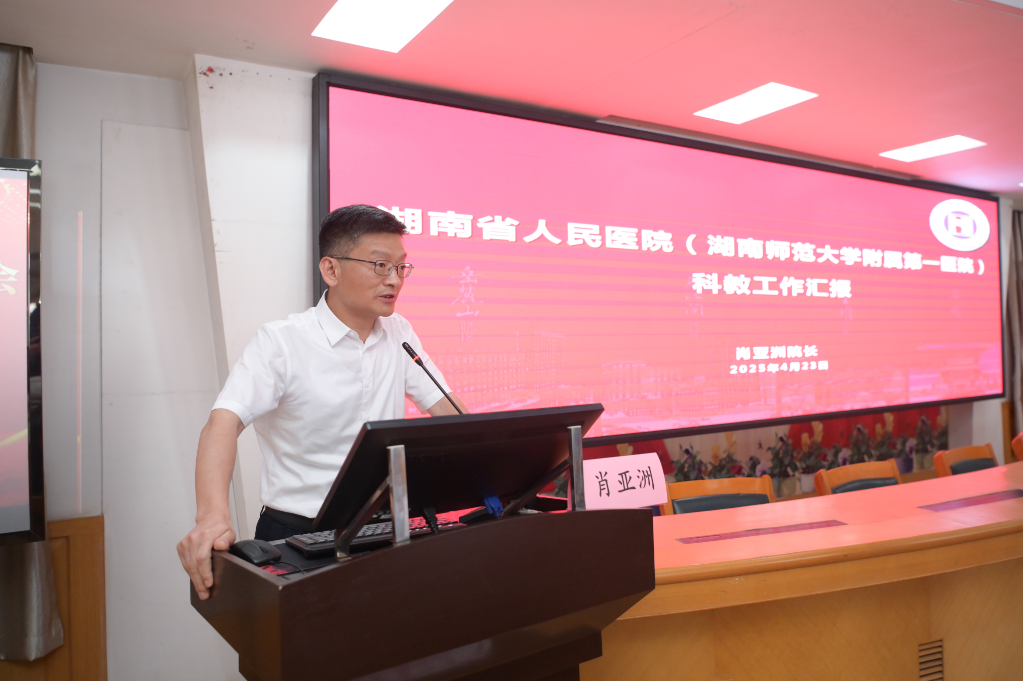 肖亞洲從醫院基本概況、教學科研情況及2025年科教工作目標等方面詳細作了匯報。醫學部副主任、醫院管理處處長洪秀琴對附屬醫院考核情況進行了點評并解讀了《湖南師范大學臨床教學體系建設方案》。醫學部科技處副處長余星、教務處副處長李玉飛、學生工作辦公室主任陳松分別部署相關工作。與會人員圍繞科學謀劃“十五五”時期學校醫學學科建設工作展開了討論和交流。