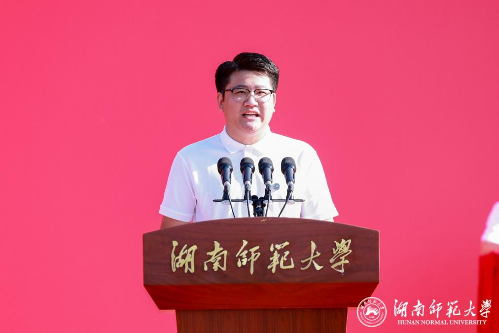 生命科學學院2025級博士研究生李燾、商學院2025級本科生匡珍慧作為新生代表發言。他們表示,將鄭重接過歷史接力棒,永葆愛國赤子之心、激揚奮發向上之心、涵養創新探索之心,追求卓越、腳踏實地、勇擔使命,攜手書寫無愧于時代的青春華章。