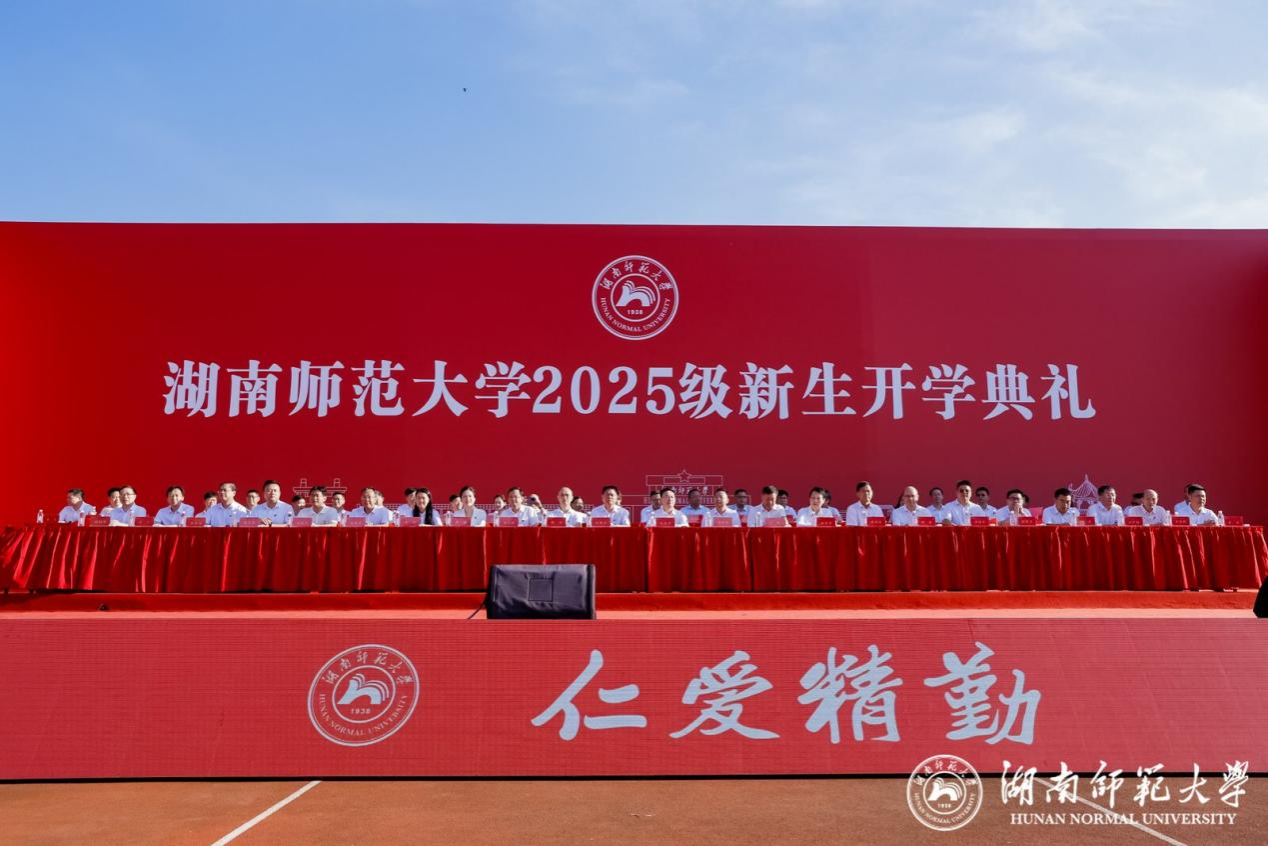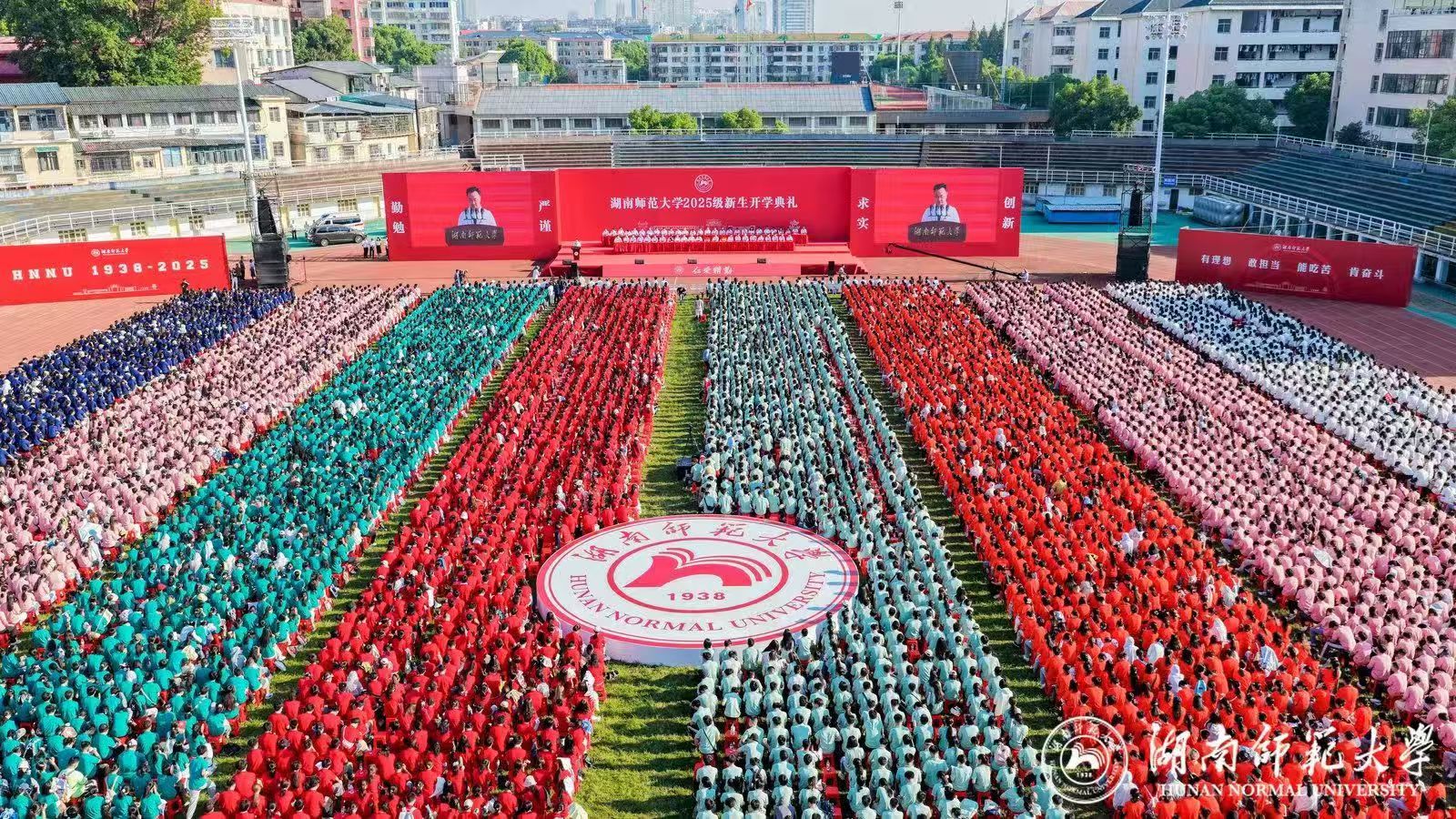 (記者 周凱興 馬鐵泉 李采薇)9月16日上午,我校在二里半校區體育場隆重舉行2025級新生開學典禮。14300多名新生以秋光為序,奔赴筑夢師大的新征程。