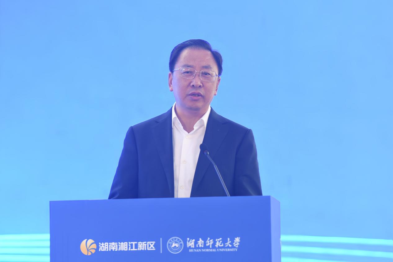 譚勇代表長沙市委、市政府和湘江新區(qū)黨工委、管委會對項目開工表示熱烈祝賀。他指出,湖南師范大學科創(chuàng)港校區(qū)建設,是落實習近平總書記考察湖南重要講話精神的生動實踐,是省、市、新區(qū)推進教育、科技、人才一體化發(fā)展、建設具有核心競爭力的科創(chuàng)高地的有力支撐,也是湖南師范大學推進“雙一流”高校建設的核心承載,該項目一頭連接國家“兩重”資金支持,一頭連接湘江科學城萬億級產業(yè)集群。他希望,湖南師范大學以“開工即決戰(zhàn)、起步即沖刺”的奮進姿態(tài),發(fā)揮自身優(yōu)勢,構建“校區(qū)—園區(qū)—城區(qū)”三位一體、學研產城深度融合的創(chuàng)新生態(tài),為湘江新區(qū)搶占量子科技、人工智能、生命健康等未來產業(yè)制高點提供硬核支撐,為全市全省推動高質量發(fā)展、實現(xiàn)“三高四新”美好藍圖貢獻更多智慧和力量。他表示,長沙市、湘江新區(qū)為項目建設開啟“綠色通道”,提供全方位服務保障,將湖南師范大學科創(chuàng)港校區(qū)打造為湘江科學城片區(qū)的標志性、引領性項目。