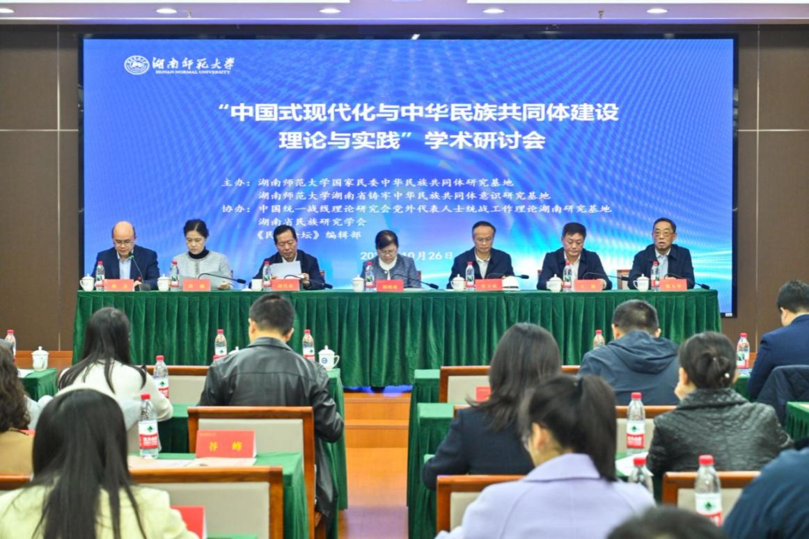 (通訊員 呂依婷 杜安安 陳星宇)10月26日至27日,由湖南師范大學國家民委中華民族共同體研究基地、湖南省鑄牢中華民族共同體意識研究基地(以下簡稱為“研究基地”)主辦,中國統一戰線理論研究會黨外代表人士統戰工作理論湖南研究基地、湖南省民族研究學會、《民族論壇》編輯部協辦的“中國式現代化與中華民族共同體建設理論與實踐”學術研討會在我校舉辦。國家民委理論研究司二級巡視員陳曉嫚,省委統戰部副部長、省民宗委黨組書記、主任覃萬成,省社科聯黨組書記、副主席胡代松,我校黨委委員、副校長王輝,黨委副書記段巍,研究基地首席專家、省民族研究學會會長鄭大華出席開幕式。校黨委委員、統戰部部長、研究基地副主任楊念主持開幕式。