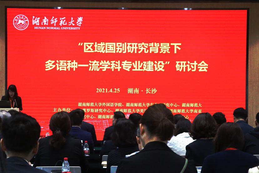 4 月 25 日,“區(qū)域國(guó)別研究背景下多語(yǔ)種一流學(xué)科專業(yè)建設(shè)”研討會(huì)于湖南師范大學(xué)舉行。來(lái)自北京大學(xué)、吉林大學(xué)、南京大學(xué)、北京外國(guó)語(yǔ)大學(xué)、上海外國(guó)語(yǔ)大學(xué)、黑龍江大學(xué)、天津外國(guó)語(yǔ)大學(xué)、西安外國(guó)語(yǔ)大學(xué)、延邊大學(xué)等 30 多所高校及科研院所的 50 余名專家學(xué)者現(xiàn)場(chǎng)參會(huì)。
