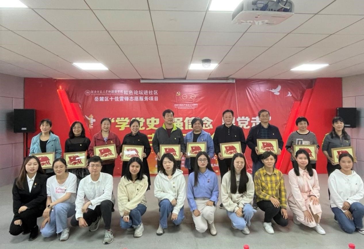 據悉,湖南師范大學外國語學院“語你同行”區校共建服務項目自2012年開展以來,有近3000名大學生志愿參與到社區“志愿課堂、幫譯服務、文化建設”等領域,推出了“愛語得樂”夏令營、“多彩戲劇,聽唱相隨”外文戲劇表演、國別文化課堂、社區文化“多語種+”展示等活動,志愿者的腳步已遍布社區的各個角落。在2019年,社區獲評了湖南省“最美志愿服務社區”稱號。此次紅色論壇進社區活動既是區校共建項目形式創新,更是學院黨委深入開展黨史學習教育的重要舉措。