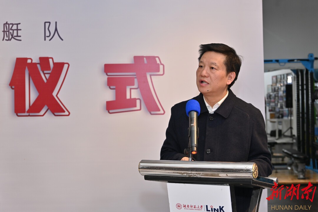 湖南省體育局黨組書記、局長李舜,湖南師范大學黨委書記蔣洪新,中國賽艇協會常務副主席陳春新,省體育局黨組成員、副局長龔旭紅,以及舉重奧運冠軍龍清泉等領導、嘉賓出席成立儀式。