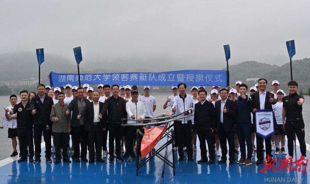 新湖南客戶端5月22日訊(記者 胡旻蔡矜宜)今天上午,湖南首支高校賽艇隊——湖南師范大學領客賽艇隊在長沙市西湖公園領客水上運動基地正式成立并進行授旗。
