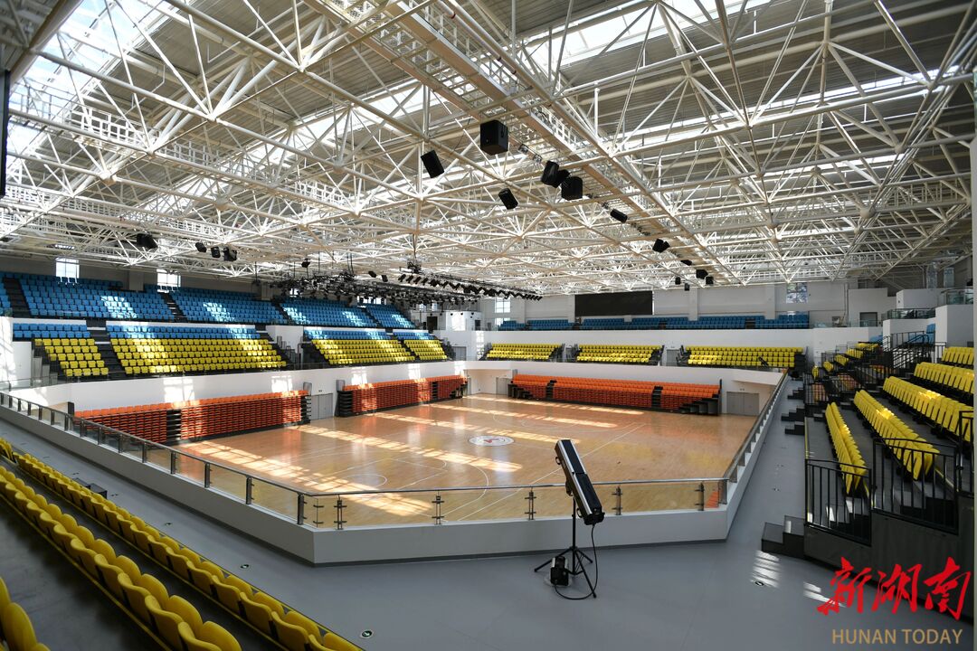 經過1年半的修建,江灣體育館成為了湖南師大今年全新亮相的新地標。該館位于岳麓區桃子湖路與麓山南路交叉處,總建筑面積19907.04平方米,建筑高度17.95米,地上三層,地下二層,主館觀眾席共計4667座。