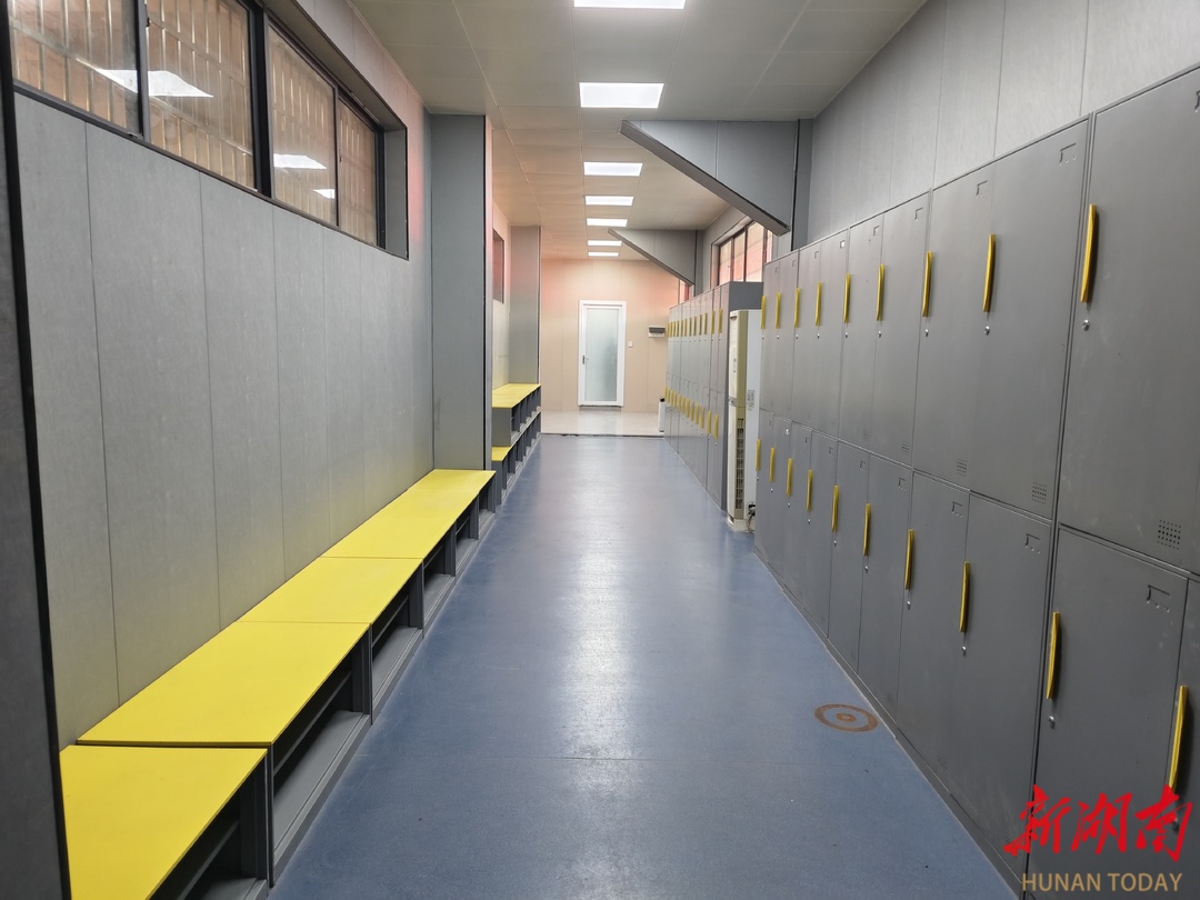 記者看到,位于看臺下方的主客隊休息室均為獨立區域,并且分別配備了空調、儲物柜、淋浴間和衛生間等,雖然空間不大,但可謂“麻雀雖小五臟俱全”。