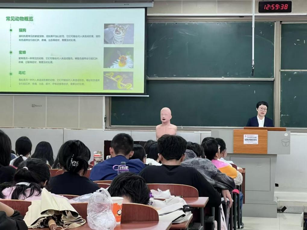 湖南省腫瘤醫院藥學部護士長金燦歡宣講了《動物傷、跌倒防范與急救》,她講解了動物咬傷的緊急處理方法,強調第一時間的清潔傷口和及時就醫的重要性。通過這次宣講,學生們將學會如何在遭遇動物咬傷時,采取正確的急救措施,保護自己和他人,以及如何處理跌倒的防范與急救措施,強調預防跌倒的重要性和正確的急救方法。旨在提高學生們的自我保護意識和急救技能,以便在緊急情況下能夠迅速有效地采取行動。
