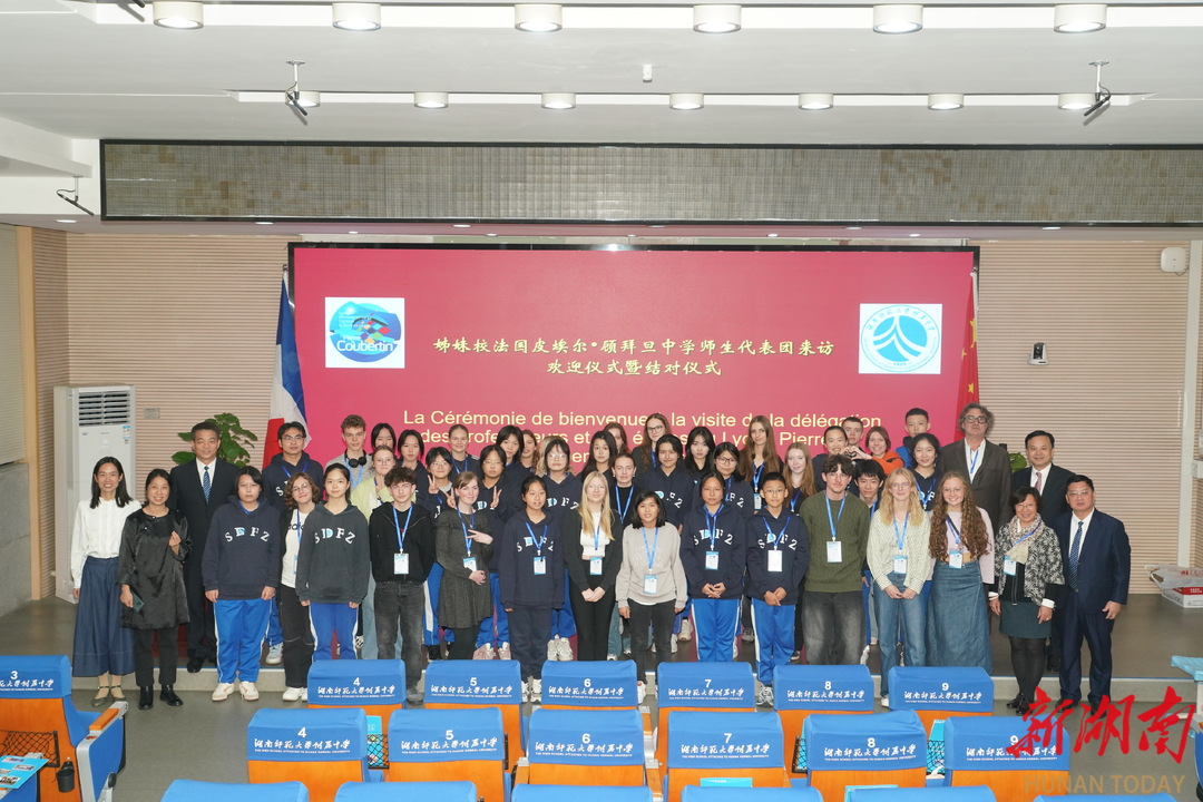 湖南師范大學附屬中學黨委書記謝永紅、校長黃月初以及副校長蘇建祥出席了儀式。附中結(jié)對學生和他們的家長們,與法國師生們歡聚一堂,在歡聲笑語中共同見證了這一跨越國界的友誼時刻。