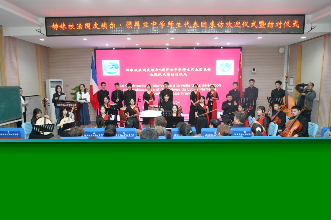 Bonjour!(法語:你好)10月22日,湖南師范大學附屬中學迎來了其姊妹學校——法國加萊顧拜旦中學的師生代表團。當日下午,一場盛大的歡迎儀式暨結(jié)對儀式在該校之謨圖書館內(nèi)舉行。