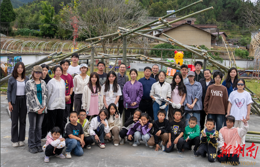 10月19日至26日,由民革湖南師范大學總支聯合桂東縣東洛鄉人民政府共同主辦,湖南師范大學美術學院承辦的“美育進鄉村·風土藝術節”在桂東縣東洛鄉中心小學和上東村成功舉行。由在讀研究生、本科生組成的25人學生團隊在指導老師羅暢的帶領下,基于當地自然風貌與傳統技藝展開設計,利用本地楠竹為主要材料,在當地竹藝匠人的協助下搭建完成六組裝置作品。本次活動更特別邀請東洛鄉中心小學的孩子們共同參與作品的制作,切實踐行以鄉村大地作為美育現場,與美同行、以美立人的活動初衷。