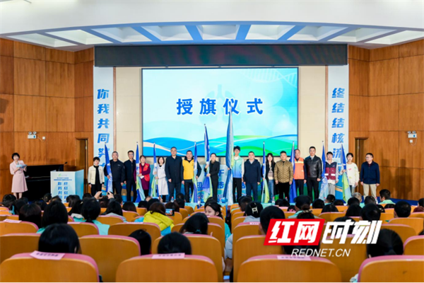 來自湖南師范大學醫學部的志愿者們現場鄭重承諾,將以滿腔的熱情和堅定的信念,為實現“終結結核流行”的愿景而不懈努力。現場還舉行了“百千萬志愿者”授旗儀式。領導們將象征著結核病防治使命與責任的旗幟傳遞給志愿者代表隊伍,不僅是對志愿者們辛勤付出的肯定,更是對未來結核病防治工作的展望。來自長沙市各區縣(市),代表著不同行業和人群的志愿者們宣讀倡議書,倡導全社會關注結核病防治,為終結結核流行貢獻更多力量。