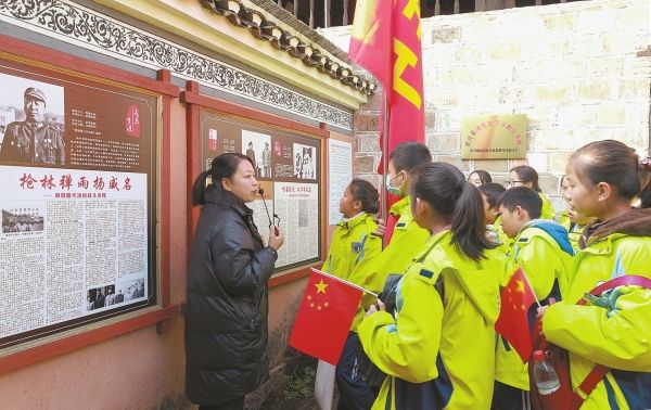 麻陽苗族自治縣巖門鎮玳瑁坡村滕代遠故居,學生在開展“紅色信仰我傳承”主題教育活動。滕樹明 攝