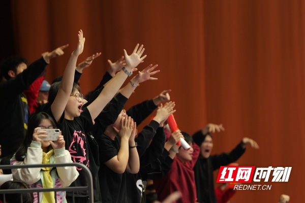 看臺上,球迷們一同見證了湖南男排的勝利。