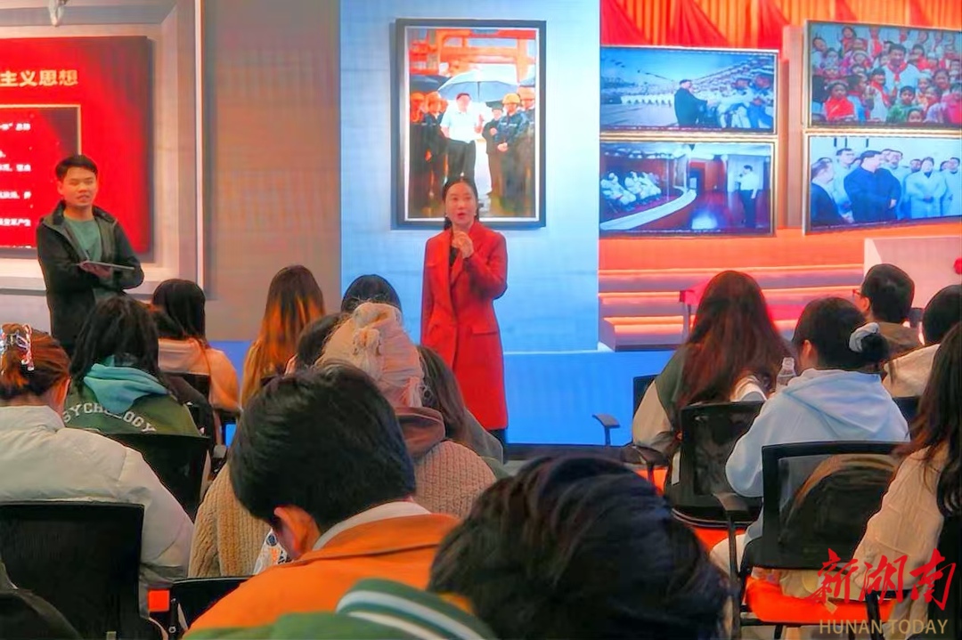 湖南日?qǐng)?bào)11月22日訊(全媒體記者 余蓉 通訊員 王昱 付敏)為增強(qiáng)大學(xué)生對(duì)毛澤東思想的理解和認(rèn)同,深刻領(lǐng)悟毛澤東思想深邃的深刻內(nèi)涵,11月19日下午,全國(guó)高校網(wǎng)絡(luò)教育名師、湖南師范大學(xué)馬克思主義學(xué)院副教授陳麗榮將思政課堂搬出教室,帶領(lǐng)《毛澤東思想和中國(guó)特色社會(huì)主義理論體系概論》課程的104名本科生、研究生走進(jìn)湘潭大學(xué)“大思政課”實(shí)踐教學(xué)基地——毛澤東思想專題展和“四史”虛擬仿真實(shí)驗(yàn)室,開展了一次別開生面的移動(dòng)思政課。