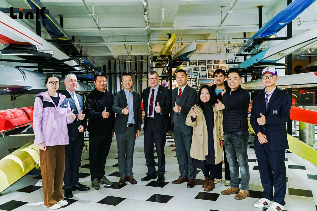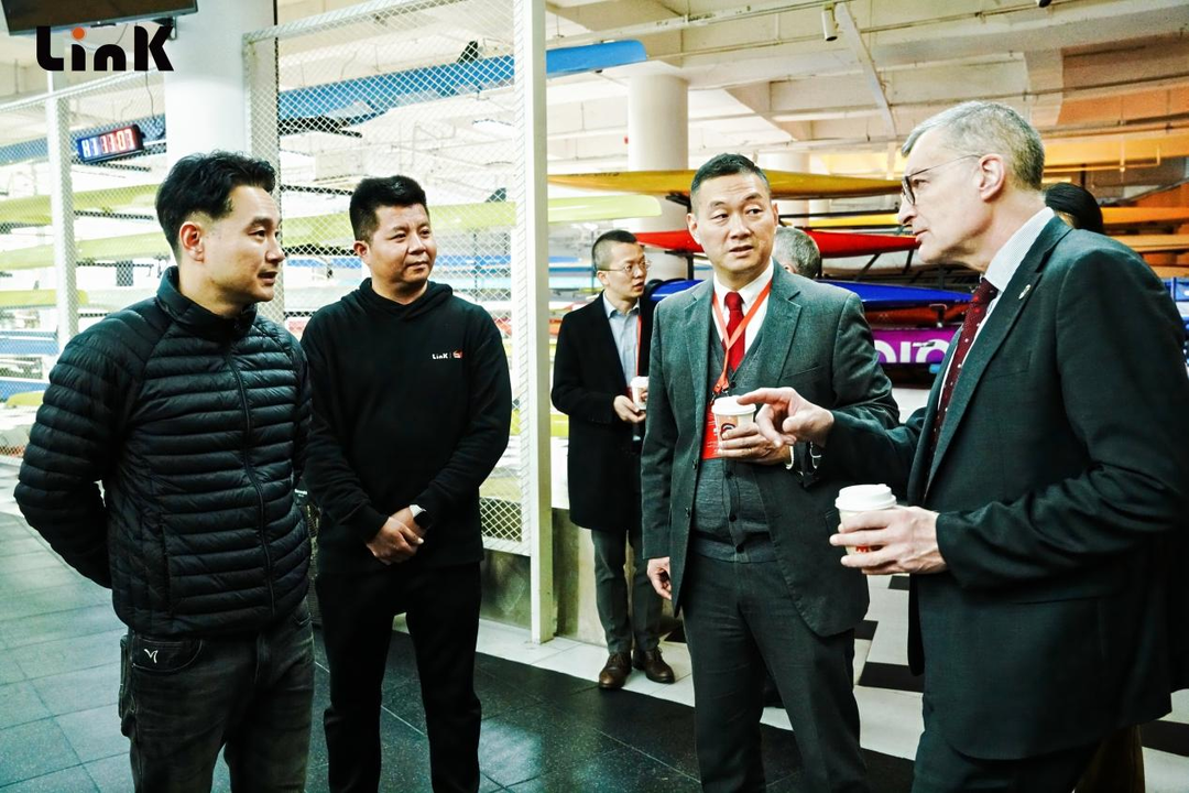 11月25日,英國中央蘭開夏大學校長Graham Baldwin校長、國際合作事務部主任Paul Rowe、亞洲合作事務部主任葛繼飛,高級亞洲區合作官員文小榕,英國總領事館文化教育處中國區體育項目主任黎瑞一行抵達領客體育全民水上運動基地進行訪問交流。