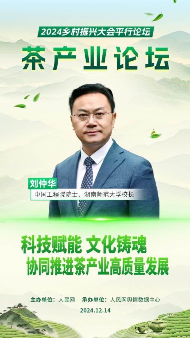 近日,由人民網主辦、人民網輿情數據中心承辦的2024鄉村振興大會平行論壇·茶產業論壇在京舉行。中國工程院院士、湖南師范大學校長劉仲華通過視頻連線形式,圍繞“科技賦能茶產業,助力鄉村全面振興”的主題進行深入分享。
