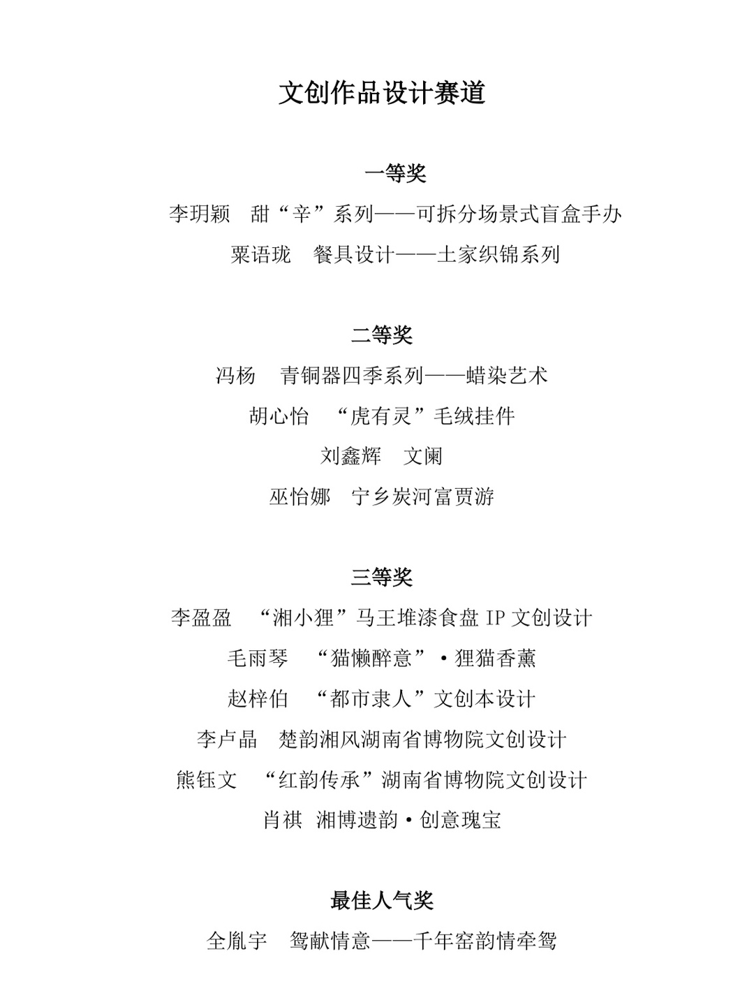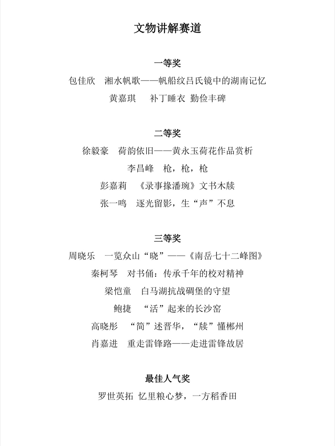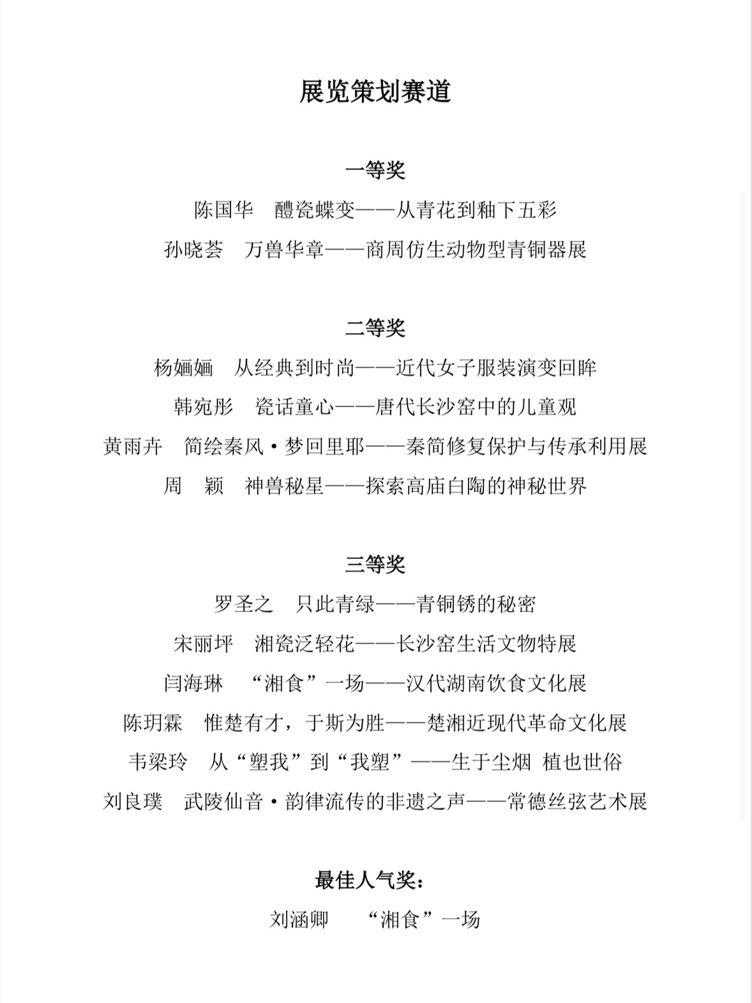附獲獎(jiǎng)作品名單: