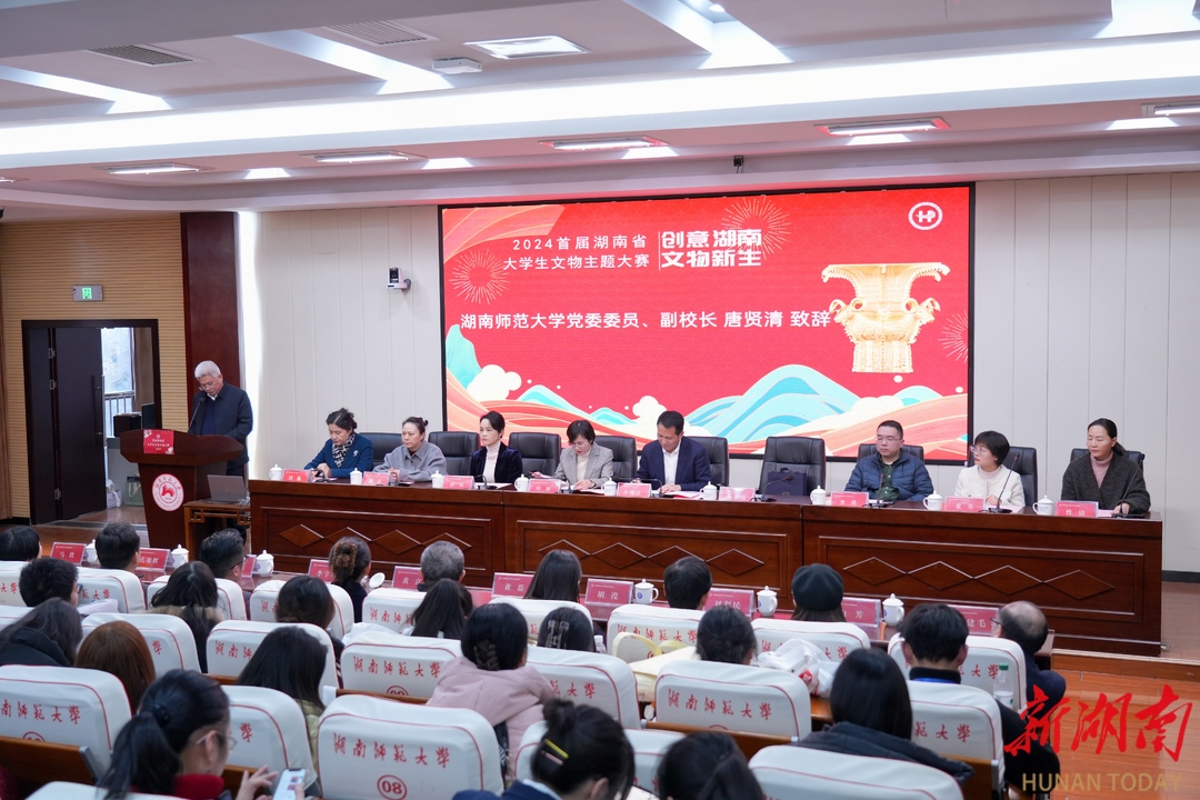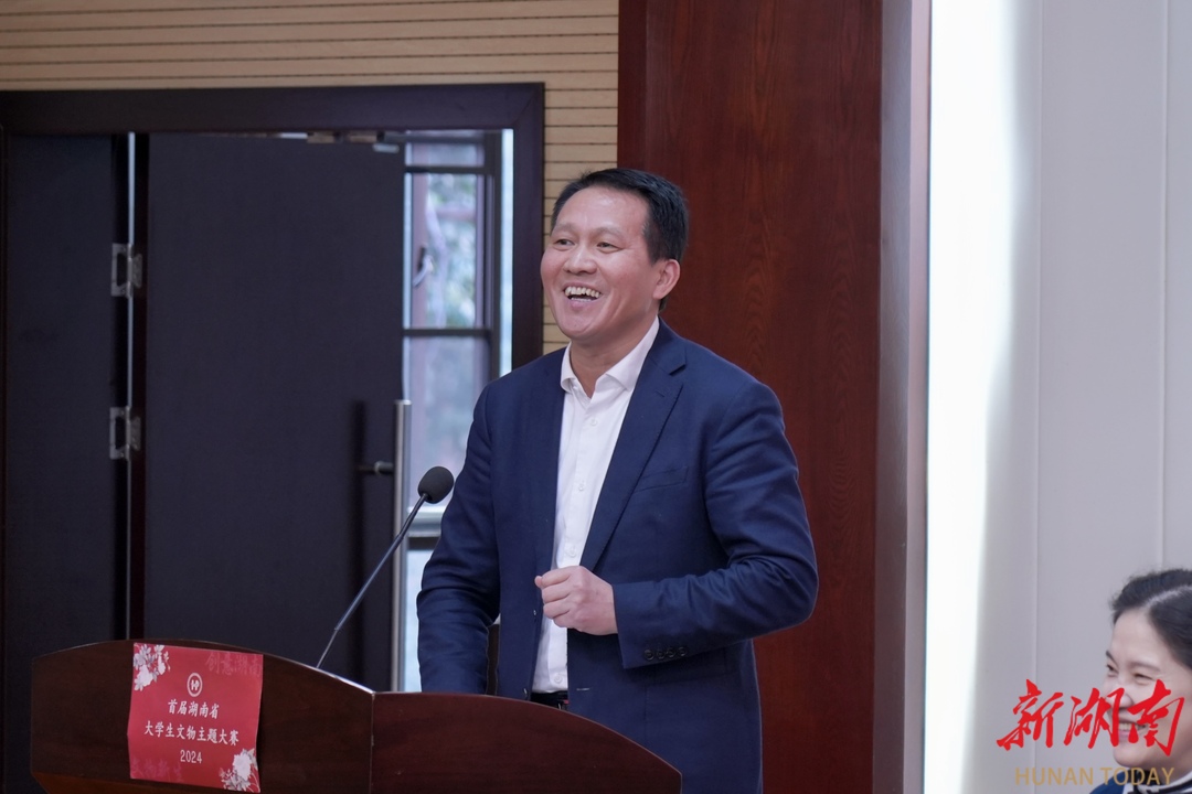 “希望各單位持續(xù)加大對(duì)文物保護(hù)與文化傳承創(chuàng)新的支持力度,向同學(xué)們放開更多接觸文物、研習(xí)技藝的實(shí)踐基地。希望湖南師范大學(xué)繼續(xù)深化校社協(xié)同,加強(qiáng)國(guó)際交流,讓湖湘文物在世界舞臺(tái)綻放光彩。希望同學(xué)們以此次大賽為起點(diǎn),繼續(xù)深耕文化沃土,成為文物保護(hù)的宣傳者、文化傳承的踐行者。”湖南省委教育工委委員、湖南省教育廳黨組成員余偉良說。