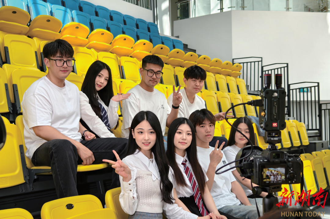 湖南師范大學(xué)星空網(wǎng)絡(luò)文化工作室成員拍攝思政音樂作品《青春當(dāng)燃》。