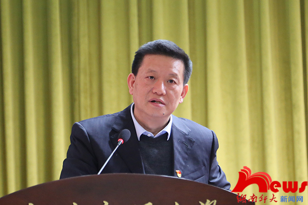 蔣洪新對大家一直以來的辛勤付出表示感謝,并祝賀所有獲得表彰的先進單位與個人。他對從嚴治黨及平安校園建設兩項工作提出了要求。他指出,要充分認識全面從嚴治黨的政治意義,加強政治引領,堅決反對“四風”,堅持“嚴”的主基調,推動黨風廉政建設縱深發展。他強調,各部門要深化責任意識,緊密圍繞“平安高校”建設的各項目標要求,不斷完善工作機制,為推進學校事業健康穩健發展營造一個安全穩定的校園環境。