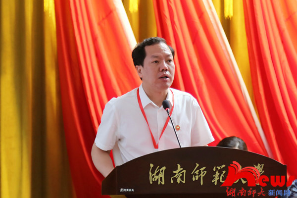 高新明代表省教育工會對“雙代會”的召開表示熱烈祝賀,他充分肯定了我校堅持“仁、愛、精、勤”的校訓精神,緊緊圍繞立德樹人根本任務,全面深化綜合改革,聚焦“雙一流”建設,學校綜合實力和辦學水平全面提升,培養了大批杰出人才,不愧為省屬高校的“領頭雁”。學校工會在黨委的堅強領導和行政的大力支持下,堅持服務學校改革發展大局,服務教職工群眾,在教職工思想政治引領、教師隊伍建設、竭誠服務教職工等方面做了大量卓有成效的工作。他希望學校新一屆的工會領導班子,進一步強化思想政治引領,發揮橋梁紐帶作用,為推動學校改革發展凝聚力量;進一步發揮工會作用,助力教師隊伍建設,團結動員教職工建功新時代。他指出,工會要肩負職責使命,主動擔當作為,發揮好“娘家人”的作用,不斷增強教職工的獲得感、幸福感和安全感。