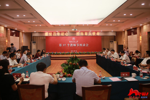 (記者 馬鐵泉)9月10日上午,我校慶祝第37個教師節教師代表座談會在國際學術交流中心五樓會議室召開。校黨委書記蔣洪新、校長劉起軍、校黨委副書記周俊武、副校長唐賢清出席座談會。座談會由劉起軍主持。