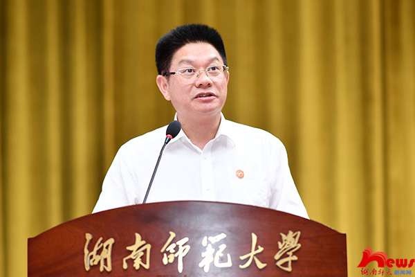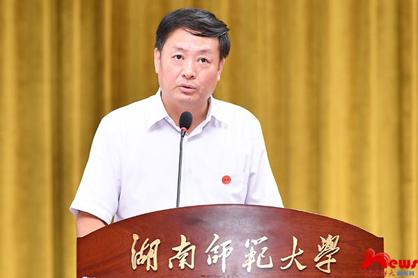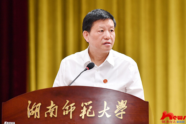 蔣洪新對一直以來辛勤工作的師生員工表示衷心感謝。他著重強調了五個方面的工作:一是堅持正確辦學方向。要堅持以習近平新時代中國特色社會主義思想為指導,深入學習貫徹習近平總書記“七一”重要講話精神和關于加強高校黨建工作的重要論述,貫徹落實《中國共產黨普通高等學校基層組織工作條例》,切實加強思想、組織和作風建設,在“學深”上下功夫、在“做實”上下功夫、在“見效”上下功夫,確保黨的教育方針在學校全面貫徹落實。二是完善頂層設計。要進一步圍繞高水平師范大學建設,將五個師大建設任務細化分解,化作具體行動方案,在發展定位上處理好師范特色與綜合發展的關系,在學科專業上處理好傳統優勢與新興交叉的關系,在功能布局上處理好物理空間與資源整合的關系。三是聚焦內涵建設。要推動內涵式高質量發展,不斷優化適應新發展格局需求的教育結構、學科專業結構、人才培養結構,實現更高質量立德樹人、更高水平創新轉化、更高效益對外開放,以高質量發展服務國家經濟社會發展。四是優化內部治理。要切實加強與改進黨對學校事業的全面領導,將堅持黨委領導下的校長負責制作為重中之重,建立健全現代大學治理體制機制,加強干部隊伍管理,不斷健全和完善現代大學制度體系。五是堅持文化引領。要把偉大建黨精神與傳承和弘揚“仁愛精勤”的師大精神統一起來,進一步優化校園文化景觀、培育校園文化品牌、加強精神文化建設,形成推動學校發展的強大動力。